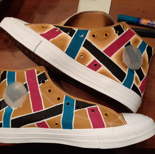 Acrylic and Fabric Markers on Hi-top shoes. Estonia. Spring 2020.